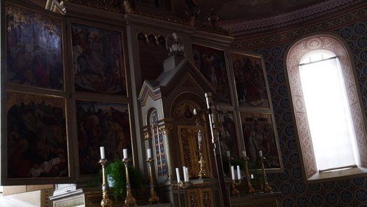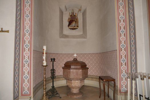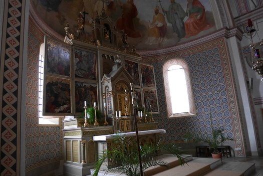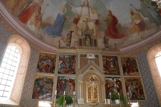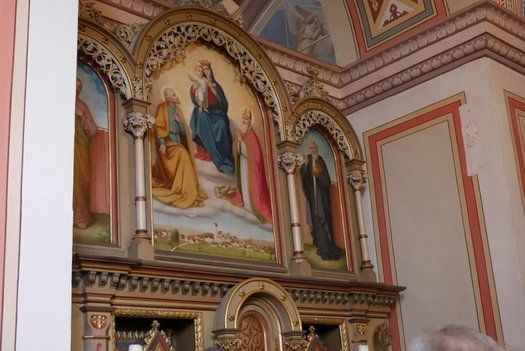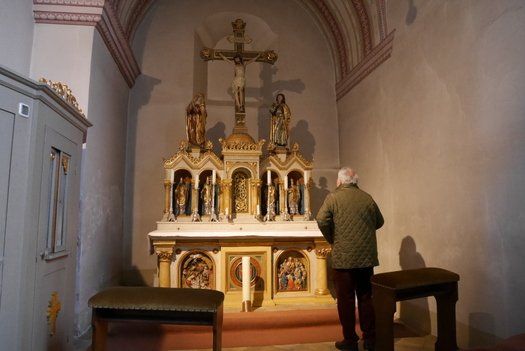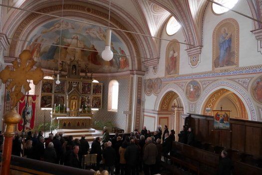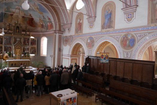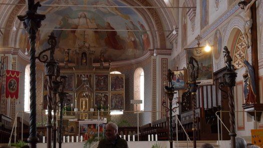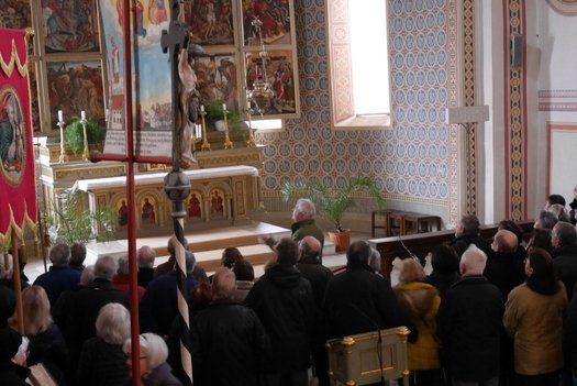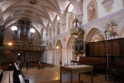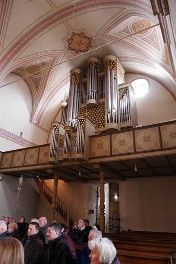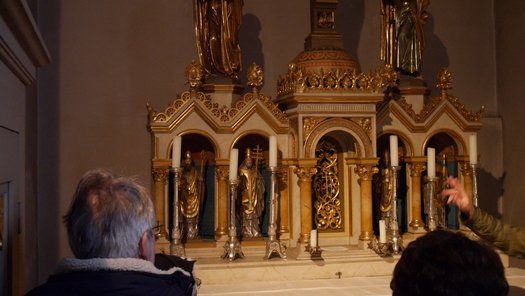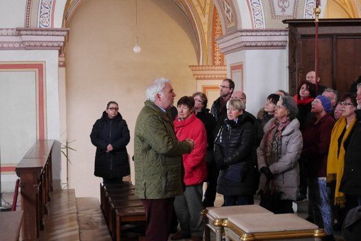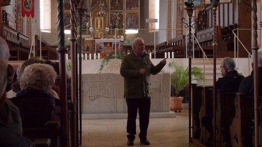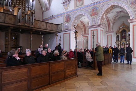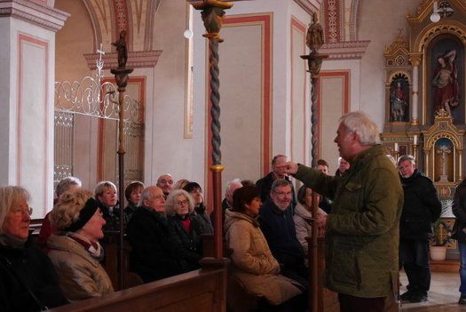 Der Heimatforscher erzählte viel Geschichtliches zu der ungewöhnlichen Kirche und ihrem prachtvollen Inventar. Auch aus der selbst erlebten Zeit der Renovierung wusste er vom Streit der Wissenschaftler zu berichten, wie denn jetzt die architektonische Mischung aus so vielen Jahrhunderten wieder herzustellen sei.