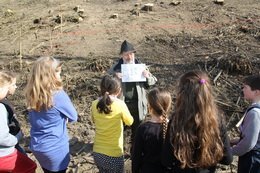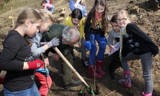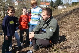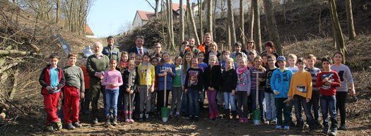 Bevor nun aber die Kinder den Spaten in die Hand nehmen durften, stand erst einmal eine kleine Unterrichtsstunde auf dem Programm. Benjamin Scharnagel erklärte ihnen nicht nur, wie die Bäume und Sträucher richtig gesetzt werden können, sondern auch welche Früchte an ihnen wachsen werden. „Mit dieser Aktion können wir nicht nur den Hang wieder bepflanzen, sondern eben auch Wissen in punkto Wald vermitteln“, erklärt Wolfgang Oberprieler.