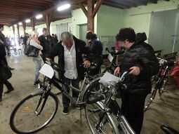 Ein Herr, der als Erster vor der Türe stand und zielsicher 4 Fahrräder schnappte und auf der Seite deponierte, erzählte, dass er jedes Jahr herkomme und möglichst günstige Räder aussuche. Er sei verheiratet mit einer Tunesierin und wohne immer ein halbes Jahr in Tunesien. Die Menschen dort seien bettelarm, für sie sei ein Fahrrad die Erfüllung ihrer Träume. Deshalb fahre er jedes Jahr eine Wagenladung voll Rädern nach Tunesien und verteile sie bei den ärmsten Familien.