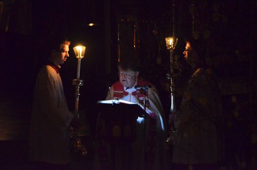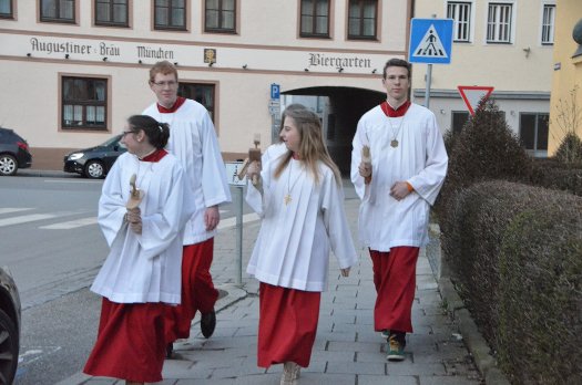 Der Feuerweihe und der Lichtfeier am Kirchenvorplatz folgte nach dem Einzug in die dunkel gehaltene Kirche mit dem gemeinsam gesungenen „Lumen Christi“- Deo gratias der österliche Preisgesang in dem Christus als das Licht der Welt gepriesen und seine Auferstehung in den Kontext des göttlichen Heilsplans gestellt wurde.