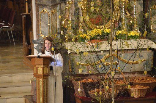 Die Fortsetzung des Hochfestes ist am morgigen Ostersonntag und beginnt um 8.30 Uhr mit dem Rosenkranz. Darauf folgt um 9 Uhr der feierliche Ostergottesdienst mit der Heiligen Messe, anschließend ist um 10.30 Uhr die Ostermesse. Am Ostermontag ist um 9 Uhr Rosenkranz, dem darauf um 9.30 Uhr die Festmesse ist, die musikalisch mit der “Krönungsmesse“ von Wolfgang Amadeus Mozart gefeiert wird. Um 11 Uhr wird dann die Taufe von Sebastian Eisenmann und Larissa Kramschuster sein.