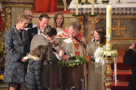 Einer der Höhepunkte bei dieser liturgischen Feier war nach der Taufwasserweihe sicherlich die Taufe von Laurenzia Weiher. Der Eucharistiefeier folgte das Te Deum uns schließlich die Speisenweihe.
