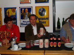 Ausgeschenkt wird der Jubiläumsmärzen auch im Vorfeld zum Auer Pfingstfest auf dem Schlossbräu-Trophy Bike-Biathlon am 16. Mai auf dem Gelände der Weißbierhalle der Brauerei. Der Bike-Biathlon wird heuer zum 5. Mal ausgetragen und wieder organisiert von Heidi und Andsen Haarpaintner vom Sportpark Au. Zwar soll an diesem Tag der Sport im Vordergrund stehen, trotzdem soll das Bier präsentiert werden. Das Pfingstfest selbst wird dann einen Tag früher, nämlich schon am Donnerstag, den 21.Mai. beginnen und wie gewohnt von Landrat Hauner eröffnet werden. Im Großen und Ganzen bleibt es so wie in den Vorjahren, versicherte Festwirt Claus Soller. Zu kosten wird das Jubiläumsbier auch auf dem Dellnhauser Volksmusikfest im Schlosshof und im Biergarten sein. Einen großen Jubiläumsabend mit Showband wird es am 18. Juli in der Hopfenhalle geben. Dazu werden an die 700 geladene Gäste aus Gastronomie und Handel erwartet. Selbstverständlich soll das Bier zur Eröffnung auf dem Hopfenfest im Juli ausgeschenkt werden, welches heuer zum ersten Mal von der Brauerei ausgerichtet wird. Den krönenden Abschluss bildet dann ein Bier-Galaabend im Schlossbräukeller, zu dem alle Mitarbeiter der Brauerei eingeladen sind.