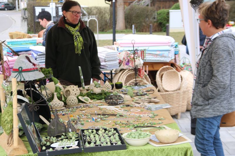 Was positiv auffiel waren die Tatsachen, dass sich das Angebot auf dem Ilmmünsterer Frühlingsmarkt wohltuend von den in dieser Jahreszeit aus den Böden sprießenden Märkten abhob, dass keine, aber auch gar keine Waren aus fernasiatischer Fertigung angeboten wurden und dass die Preise dennoch ausgesprochen moderat ausgezeichnet waren. Ganz was Besonderes unter den Ausstellern: Hopfenkunst vom Wimbauernhof ais Aiglsbach. Hopfenkeramik, Hopfenschmuck und Trachten-Accessoires, wie man es nicht überall und nicht alle Tage bekommt.