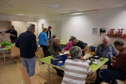 Eine ausreichend ausgeführte Beschreibung führt durch den Sinn und Zweck des Werkstatt Cafés „Zweimal im Monat, etwa immer am zweiten und vierten Samstag von 14 bis 18 Uhr, kann man sich gemeinsam mit ehrenamtlichen Mitarbeitern in ruhiger und entspannter Umgebung um die Instandsetzung von vielleicht lieb gewonnenen defekten Geräten und Gegenständen kümmern. Damit kommt man vielleicht um eine Neuanschaffung herum und wir alle sparen damit auch erheblich Material und Energie ein. Die Helfer sind meist reiferen Alters und ausreichend erfahren, um auch einmal einen Reparaturwunsch abzulehnen, weil es sich vielleicht wirklich nicht lohnt. Denn wir reparieren nicht nur gemeinsam, sondern überlegen auch, ob die Reparatur einen Sinn macht.