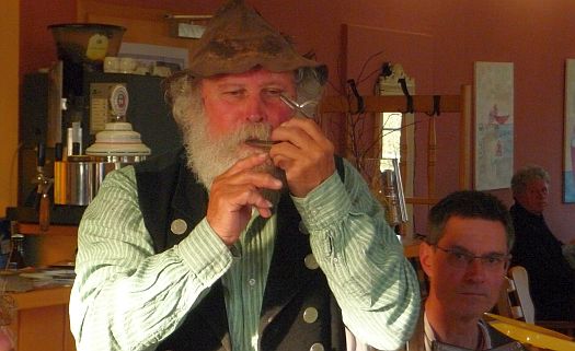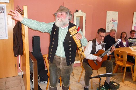 Bereits Kultstatus erreicht hat Adam´s voglwilde Darstellung des Wirtshauslieds „Wann i nachts vo da Stanz hoamgeh“ womit er bereits im Fernsehen auftrat. Krachert, voglwild und wie kein Zweiter verlieh der geübte Sänger dem Stück eine ganz persönliche Note. Es folgten weitere Couplets und „Schnaderhüpferl“. Aber nicht etwas mit Tuba oder Quetschn, sondern Maultrommel, Lotusflöte, Sortenstangerl uvm. An „exotischen“ Instrumenten mangelte es den Künstlern also bei weitem nicht.
