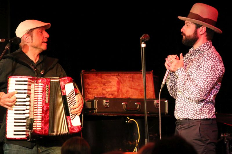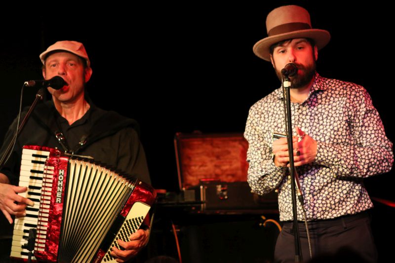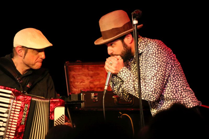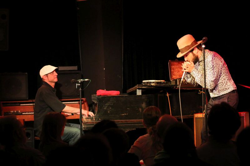 Und noch jemanden hatte Ludwig Seuss überredet, ihn auf die Incontri-Bühne zu begleiten: San2 war ganz offensichtlich - so Seuss in seiner Begrüßung - "gerade in der Nähe auf Familienbesuch" und ließ es sich zur Freude des Publikums nicht nehmen, dem Konzert noch einen zusätzlichen Stempel aufzudrücken. Seine beeindruckende Soul-Stimme, gerade im Wechselspiel mit Ludwig Seuss' Gesang, brachte den Rhythmus, dem sich aber auch gar keiner entziehen konnte. "Rebirth of Soul & Recycling the Blues" heißt die demnächst erscheinende CD von San2 & His Soul Patrol, schon der Titel ist Beleg genug, dass sich hier Musiker gefunden haben, die stilmäßig zusammenpassen und sich einzigartig ergänzen. Spätestens als Ludwig Seuss vom Klavierhocker aufstand und sich das Akkordeon umhängte, San2 dazu seine Mundharmonika ansetzte, spätestens zu diesem Zeitpunkt gab es auf der Bühne kein Halten mehr.