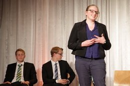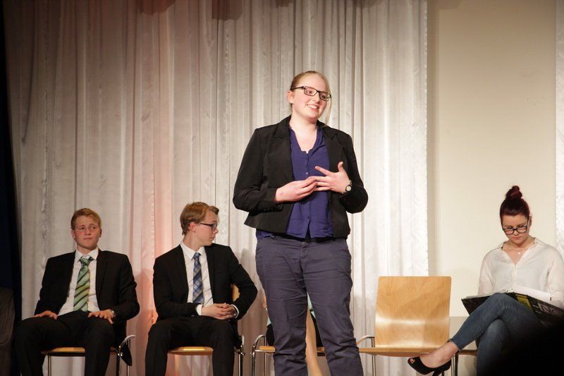 Bei der Darstellung all dieser unterschiedlichen, überforderten Figuren legten die jungen Talente gestern im Vergleich zu den Proben „nochmal eine Schippe drauf“, so ihr begeisterter Regisseur Marius Lubnow. Wer gestern nicht in der Aula des Gymnasiums saß, dem sei eindringlich ans Herz gelegt, sich heute Abend um 19:00 Uhr von der zweiten und letzten Aufführung fesseln zu lassen.