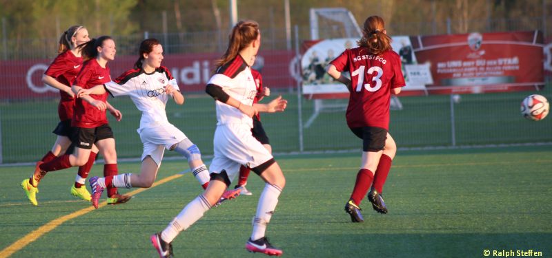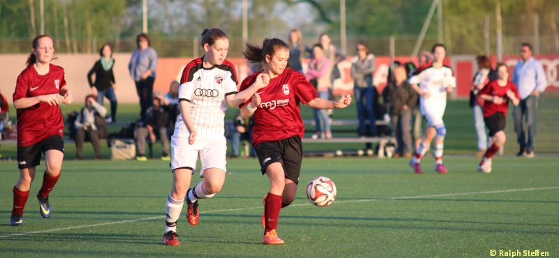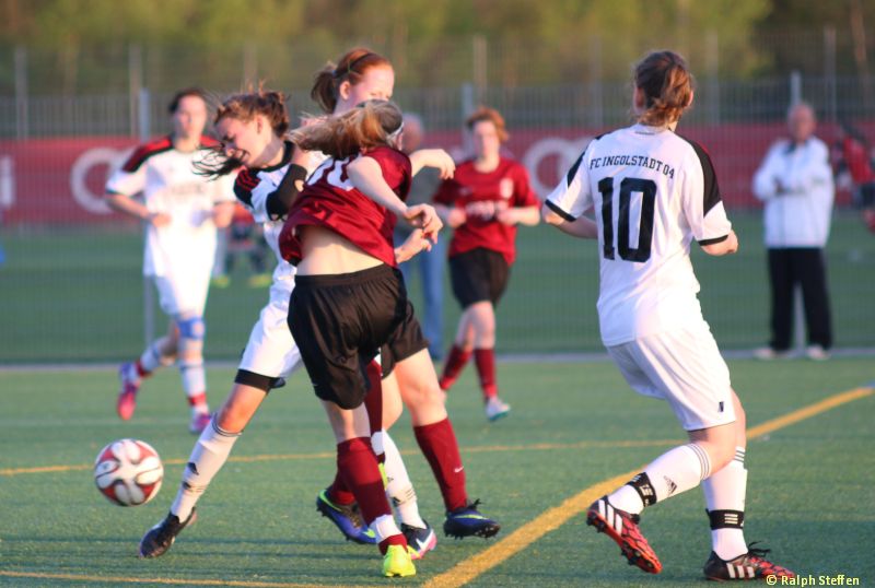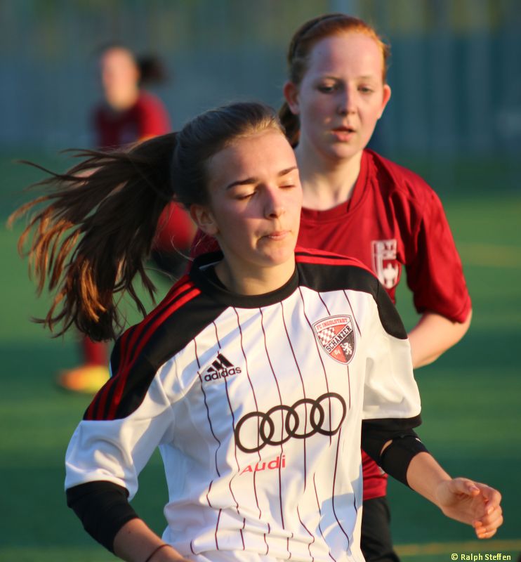 In der Folge gab es auf dem Platz einen offenen Schlagabtausch, es ging hin und her im Spielgeschehen. Kampf, Einsatz und ein unbedingter Wille zum Sieg auf beiden Seiten bestimmten die Partie. Auch wenn die Technik darüber etwas zu kurz kam, das Spiel bot den Zuschauern Spannung und Einsatzwillen bis zum Ende. Mädchenfußball auf höchstem Niveau in der Kreisliga - der FC Ingolstadt 04 II und die SG Scheyern / Gerolsbach zeigten eindrucksvoll, dass dies begeistern kann. Am Samstag, den 13.6.2015 treffen beide Teams in Scheyern zum Rückspiel aufeinander; egal ob es dabei dann noch um die Meisterschaft und den Aufstieg geht oder nicht, eines scheint gewiss: mit einem Unentschieden wird sich auch dann keine der Mannschaften zufrieden geben.