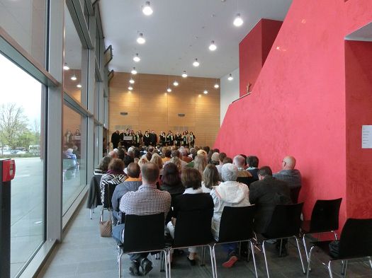 In der Vorhalle der Hopfenlandhalle fand am Samstag ein Konzert des Gospelchores "GoTrain" aus Train/Landkreis Kelheim statt, organisiert von der VHS Au. Neben Bürgermeister Karl Ecker und Vize Hans Sailer waren zahlreiche Zuhörer gekommen, um Spirituals, Gospels, geistliche Lieder aber auch Rock und Pop zu erleben.