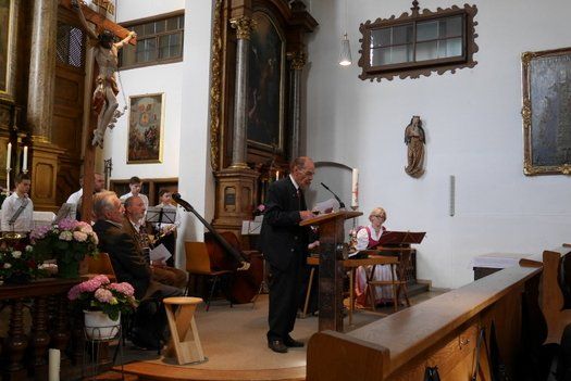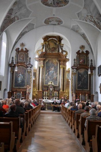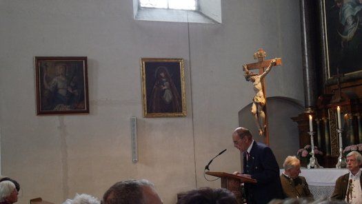 Zu hören war auch die Geschichte der Lourdes Grotte im Fuß des Pfaffenhofener Kirchturmes, gleich nebenan. Vier dicke Bücher der Danksagung sind seit der Einrichtung der Grotte, die dem Baumeister der Venus Grotte von Schloß Linderhof zugeschrieben wird, aufgelegt worden. Nach dem wunderbaren Konzert konnten die Besucher, praktisch vor Ort, gleich noch eine Kerze anzünden.