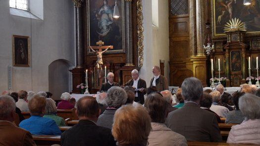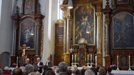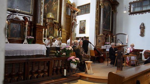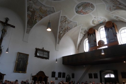 Wer jedoch schon beim Konzert seine Blicke in der Spitalkirche schweifen ließ, wird nicht weniger als acht Mariendarstellungen in der Einrichtung gefunden haben. Die Franziskaner waren eben auch nur Männer und Söhne von Müttern, was ihrem „Geschäftssinn“ durchaus einträglich war. Die Gnadenmutter der katholischen Kirche genießt im Mai ihre größte Aufmerksamkeit, das Mariensingen macht also im Frühjahr durchaus Sinn.