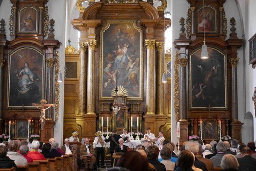 Zur Ehre der Hl. Mutter Gottes musizierten Volksmusikgruppen aus dem Pfaffenhofener Landkreis. Es spielten an diesem Sonntagnachmittag, bei der sehr gut besuchten Veranstaltung, die Wind´ner Stubenmusi, der Vohburger Dreigesang und das Blechbläserensemble der Städtischen Musikschule Pfaffenhofen. Helmut Lindner hat das Mariensingen durch seine ausgewählten Texte zum Thema Marienwallfahrt. zu einer feierlich-nachdenklichen Stunde werden lassen.