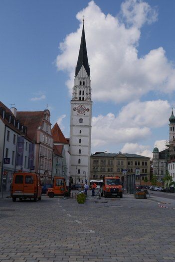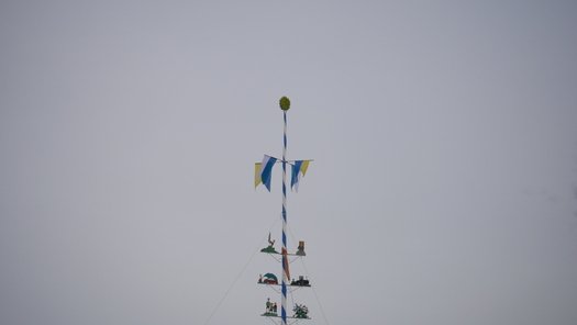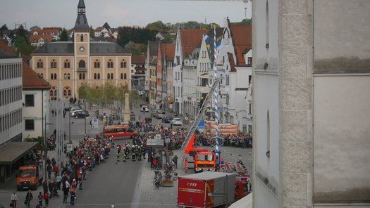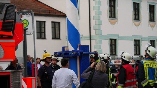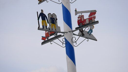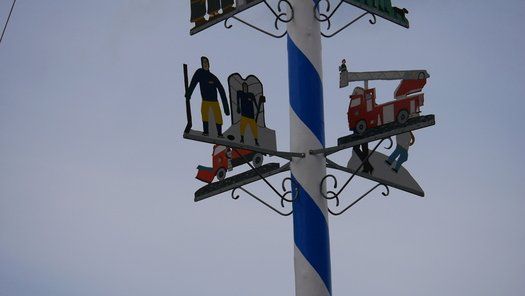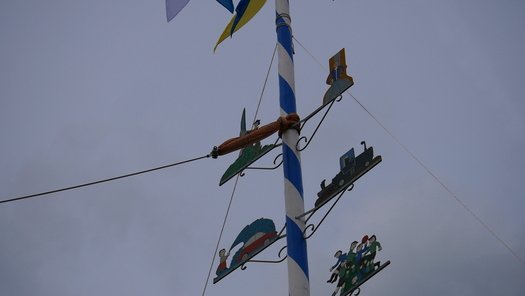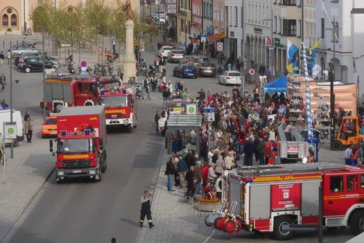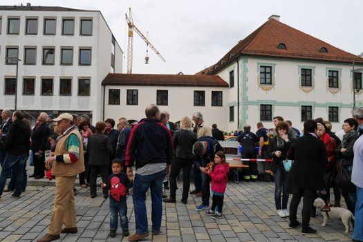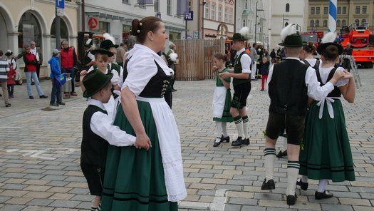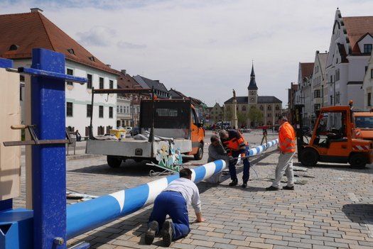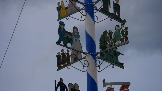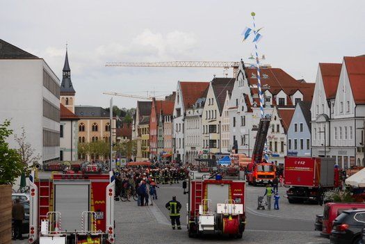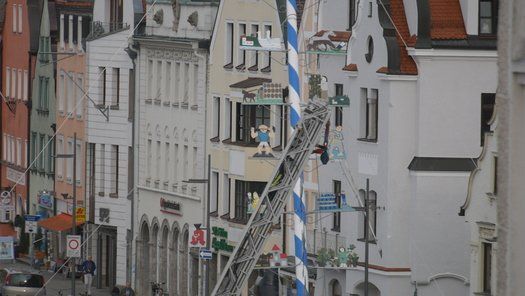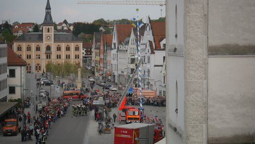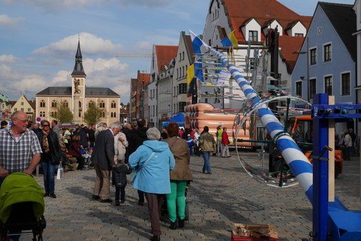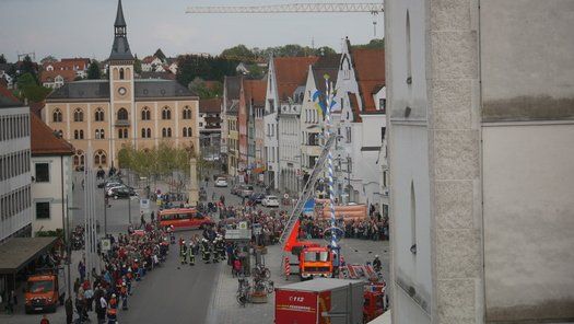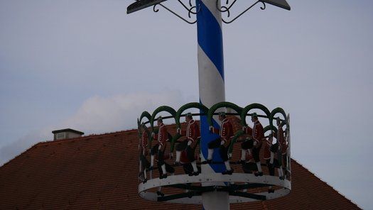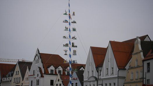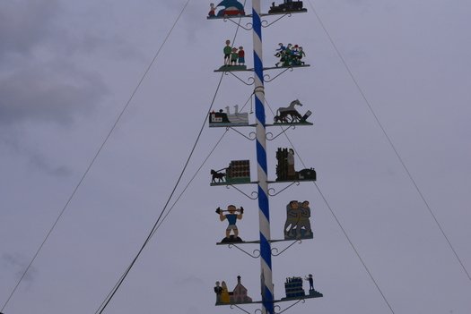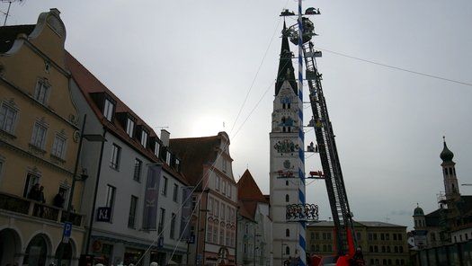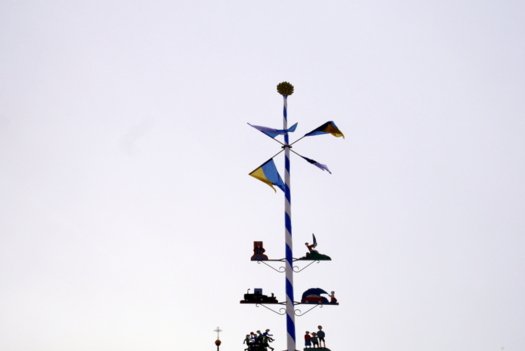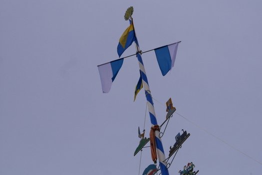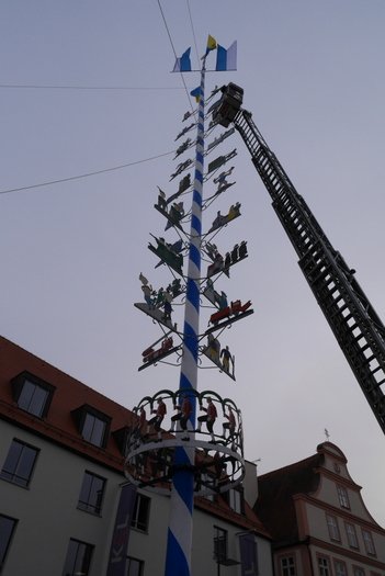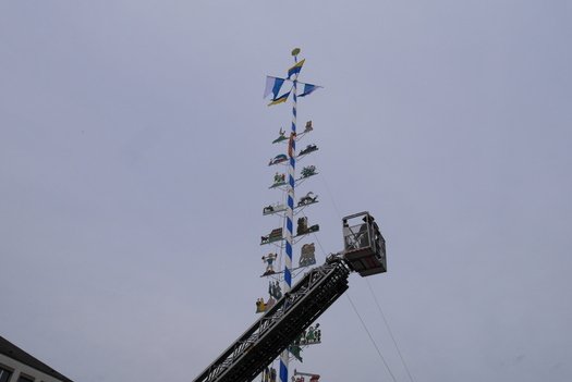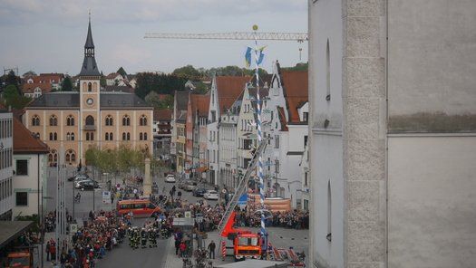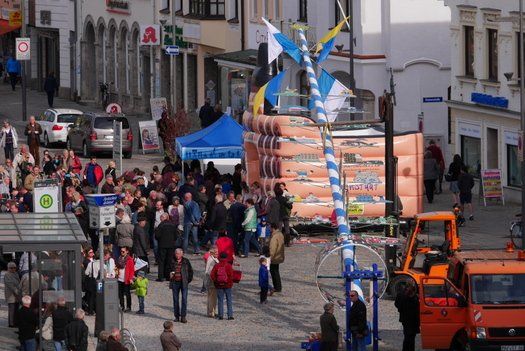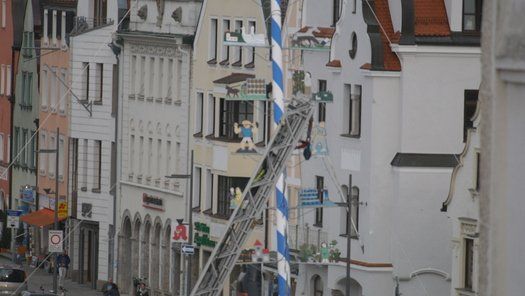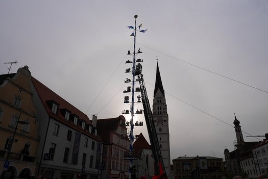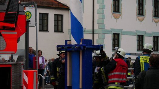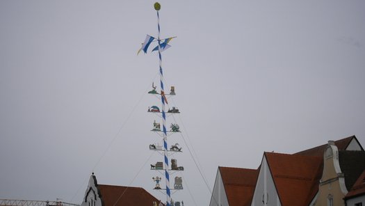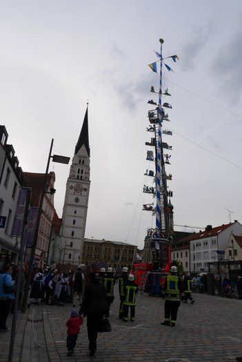Die Stadt hat ihre ganz besondere Struktur, eine Mischung aus Tradition und Moderne, die beim „maschinellen“ Hochziehen des weißblauen Maibaums durch die Feuerwehr nicht Ungewöhnliches anmahnt. Freilich wäre es schöner mit Stangen und Muskelkraft, aber die in den Dörfern brauchen auch ihre Feiern und Traditionen, „Oiso lass mas guad sei, Hautsach er steht grod und foid ned aufs Landratsamt!“