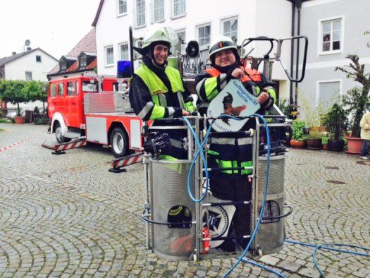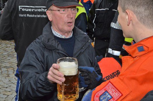 Jedenfalls haben die Muskelpakete der Maibaumgesellschaft Reichertshofen ganze Arbeit geleistet Kassier Johann Heiß kümmerte sich nicht nur rechtzeitig um die Finanzen, sondern sorgte auch für den Nachschub an Gerstensaft, den sich auch die tatkräftige Mannschaft schmecken ließ. Die peu à peu dann doch sehr stattliche Anzahl von Zuschauern musste diesmal auf die musikalische Begleitung des Ereignisses durch die Reichertshofener Musikanten verzichten. Ihre Teilnahme wurde wegen des Regens ebenso abgesagt wie die des Reichertshofener Fanfarenzugs, der in diesem Jahr erstmals mit dabei gewesen wäre. Aber ein neues Taferl gab es immerhin zu besichtigen. Denn das vom aufgelösten Wanderverein wurde ersetzt von einem neuen, und zwar dem des Modellflugclubs Reichertshofen.
