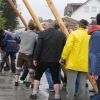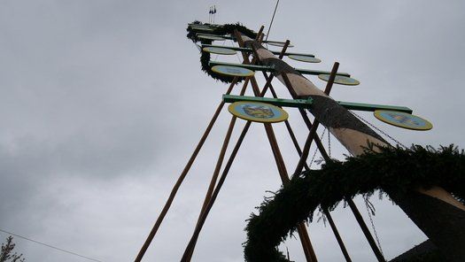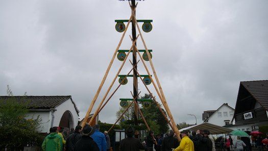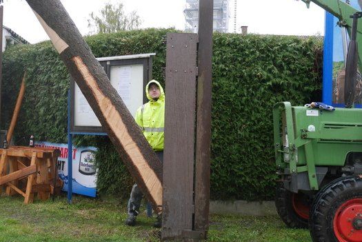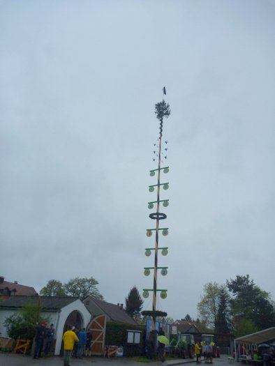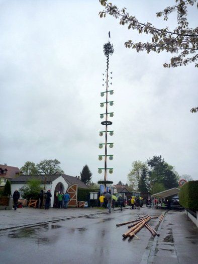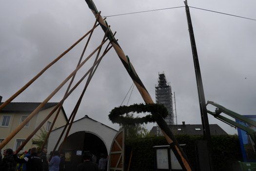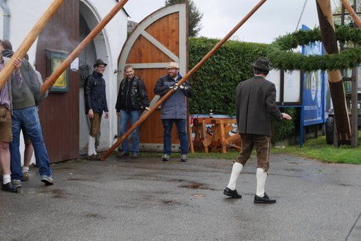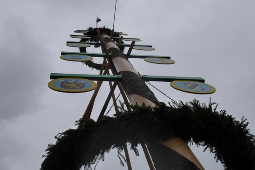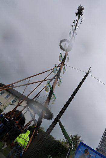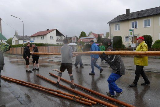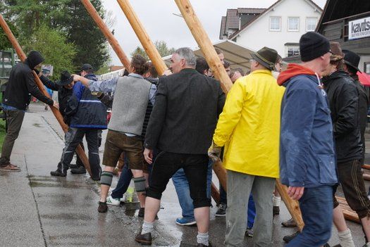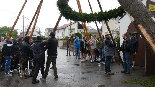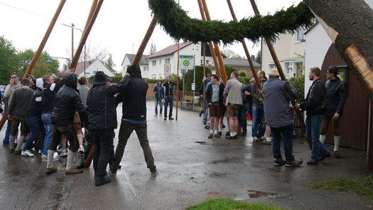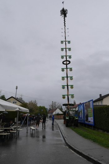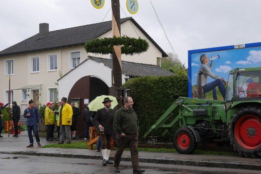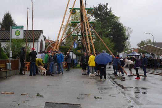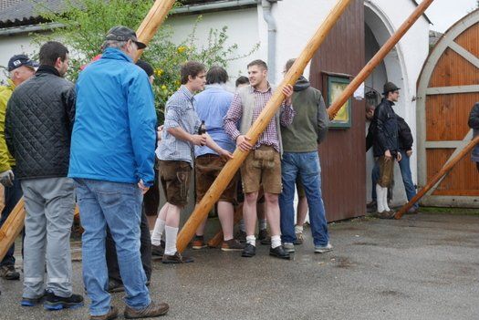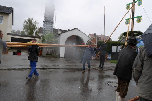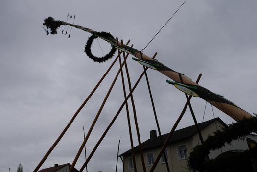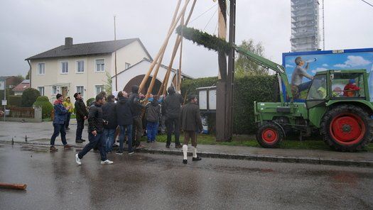 Gemeinsam, HoooooooooooooRuck, zirka 50 Mal hallte der Ruf am 1. Mai durch Niederscheyern. Hier wird der Maibaum noch jedes Jahr „hantisch aufgstanglt“, der bereitgestellte Fendt diente nur zur Sicherung, so will es die Vorschrift.