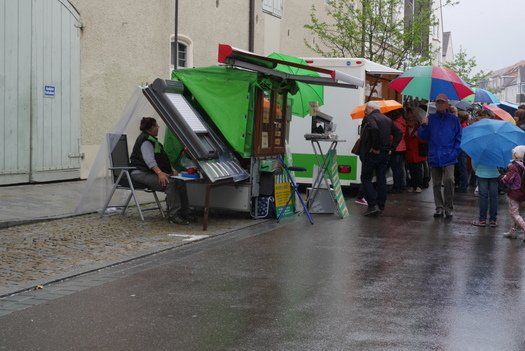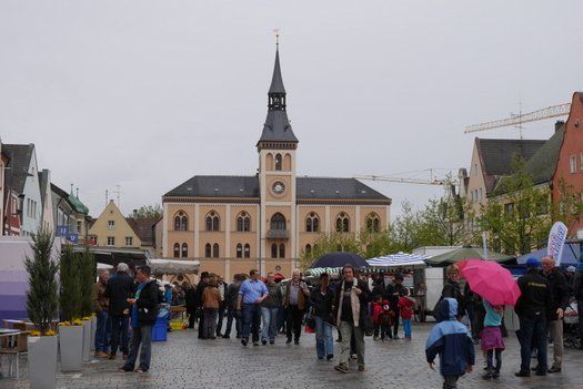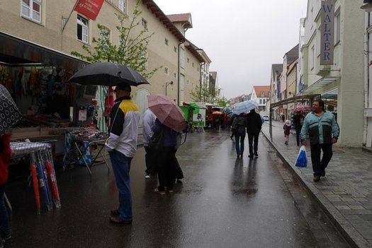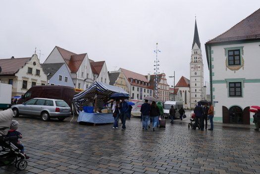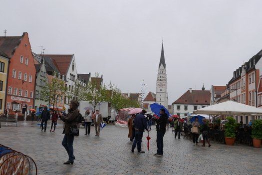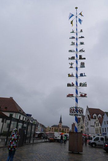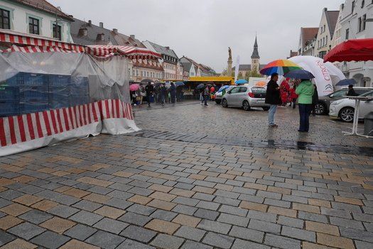 Die traditionelle Maidult in der Kreisstadt Pfaffenhofen fiel leider diesmal in das sprichwörtlich „nasse Element“. Wo sonst Besucherströme aus dem ganzen Umland den weitläufigen Hauptplatz und die Nebenstraßen füllen, herrschte nieselnde Leere.
