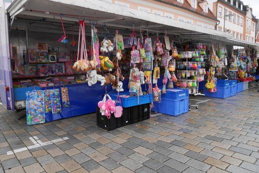 Das Verkaufsangebot bei der diesjährigen Herbstdult am 9. November reicht wieder von Haushaltsgegenständen über Spielwaren und Deko-Artikel bis zu einem großen Angebot an Textilien und Wäsche, warmen Mützen und Schals, dicken Socken und Winterpullovern. Auch für Essen und Trinken ist auf der Dult immer bestens gesorgt und da gibt es die typischen Süßwaren mit Zuckerwatte, Popcorn und Lebkuchenherzen ebenso wie deftige Bratwürstchen und Steaksemmeln oder asiatische Spezialitäten. Mit zum Dultprogramm gehören dann natürlich auch immer die Marktschreier, die ihre Produkte leutselig anpreisen.