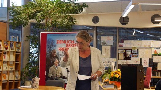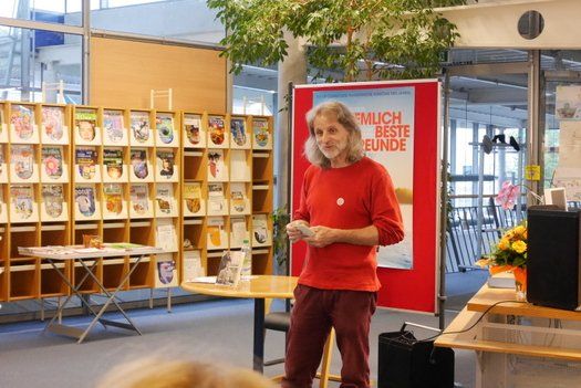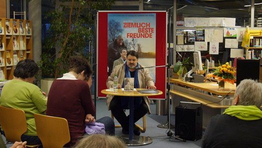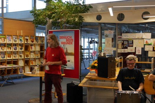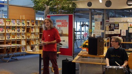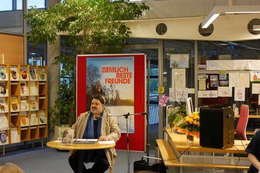 Ein Vorlesen in Leichter Sprache aus dem Buch "Ziemlich beste Freunde" mit Alexander Bally zur Eröffnung der Abteilung "Leichte Sprache"" in der Kreisbücherei Pfaffenhofen an der Ilm.