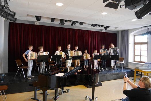 Gleich acht junge Akkordeonspieler mit ihrer Lehrerin Helga Widmann eröffneten das Frühlingsvorspiel der Städtischen Musikschule Pfaffenhofen im Mai. Bezeichnenderweise war die Darbietung im Programm mit „Let´s fetz“ angekündigt.