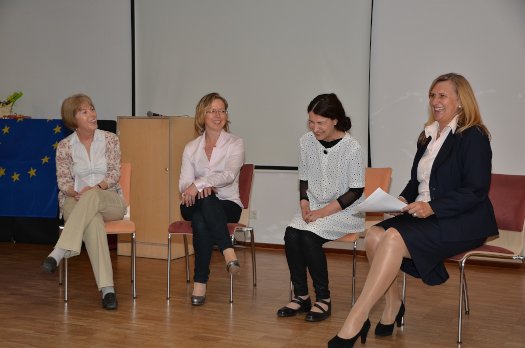 Im Gespräch über Europa (v.l.): Susan King-Howarth, Ingrid Wetzel und Niki Scholz mit Emilie Bergmeister.