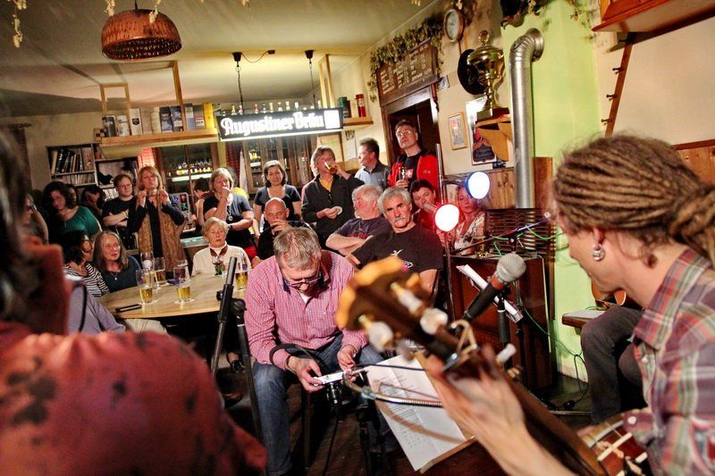 Wieder einmal war es g‘rammet voi beim Stil. Das Debutkonzert der KAPELLMEISTER hatte die Gaststube bis auf den letzten Sitz- bzw. Stehplatz gefüllt, sodass einige nur noch auf dem Gang Platz fanden. Wenig überraschend, wenn man bedenkt, wer da gestern auf der Bühne stand. Mit Peter Trapp, dem bayerischen Bob Dylan, Georg ‚Muskel‘ Appel, Martin ‚Lametto‘ Sebald und Reinhold ‚Che‘ Alsheimer war eine Granatenstimmung garantiert.