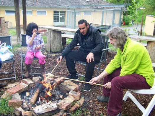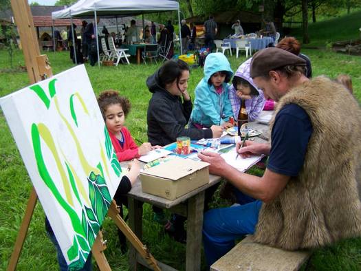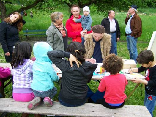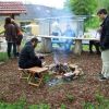Für alle Fälle gab es Glücksklee und andere Blumengeschenke von Nikolaus Buhn. Eine rosa Slackline für das innere und äußere Gleichgewicht forderte die Ungeübten. Stockbrotbacken am Lagerfeuer und heißer Spezialtee waren nur die einfachsten Versorgungsstationen. Ein Malkurs mit Günter Merkl und praktische Arbeit am lebendigen Ton fand vor allen Dingen bei den Kleinsten viel Aufmerksamkeit.