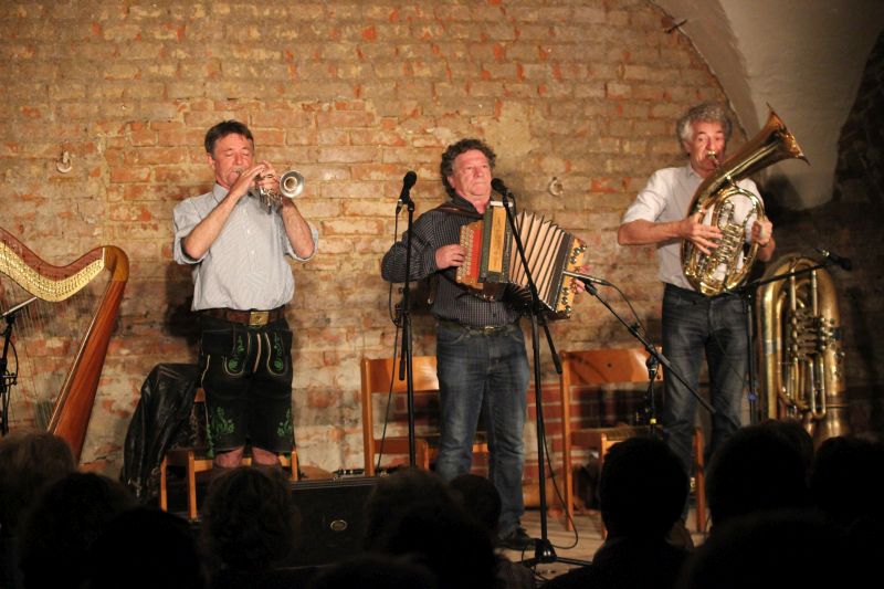 Die "19. Kleinkunst im Gewölbe" sei diese Veranstaltung, Skasa Event gäbe es seit nunmehr 10 Jahren, resümierte Christian Skasa bei seiner Begrüßung. Und genau so lange hätten sie versucht, die damals noch Biermösl'n nach Scheyern zu holen. Heuer sei es geglückt - zum Glück für alle, die dabei waren, zum Leidwesen derer, die aus welchen Gründen auch immer den Weg nicht in den Prielhof gefunden hatten. Abschließend sei noch zugegeben, dass der Berichterstatter immer froh war, wenn die Künstler ihre Virtuosität auf den unterschiedlichsten Instrumenten unter Beweis stellten; denn nur dann hatte er Zeit, das zuvor Gehörte auch nur annähernd zu protokollieren und zu verarbeiten.