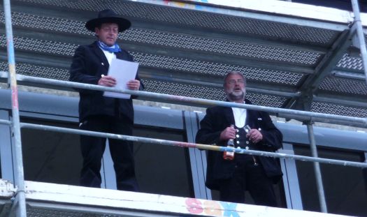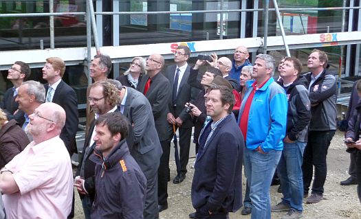 Bei einem kleinen Rundgang durch den Rohbau zeigten sich die Gäste nicht schlecht beeindruckt. Bis die derzeit in Containern untergebrachten Realschüler und Schulleiter Markus Bayerl endgültig in ihre neue Schule einziehen dürfen wird noch ein gutes Jahr vergehen. Mit seinem Richtspruch jedenfalls stellte der Zimmerer hoch vom Geländer den guten Fortschritt der Arbeiten in Aussicht.