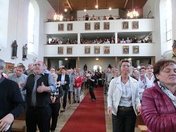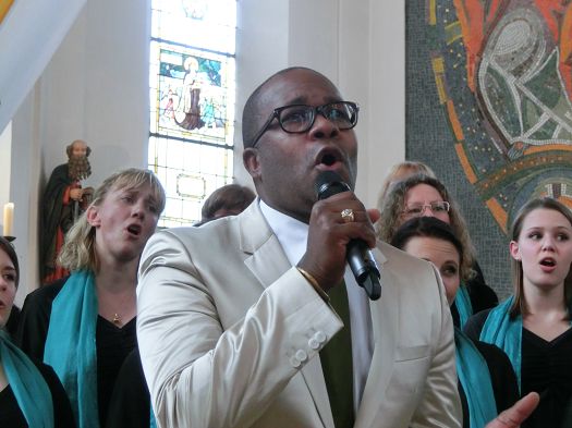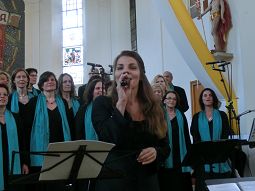 Sowohl die Moosburger als auch die Nandlstädter Kirche waren zum Bersten voll, was vielleicht auch mit dem Gaststar des Konzertes, David Bruce Whitley, zusammenhängt. Dieser ist als Top 25 Kandidat der 2013er Show "Voice of Germany" bekannt, singt Hauptrollen in bekannten Musicals wie "Miss Saigon" in Stuttgart und ist gut befreundet mit der Chorleiterin Silke Meiler-Krebs. Da sagte er natürlich sofort zu, als im Rahmen der Nandlstädter 1200 Jahr- Feierlichkeiten und gleichzeitig des 5jährigen Chorbestehens ein Konzert auf dem Programm stand. Außerdem unterstützt der Chor mit seinen Konzerten die Arbeit der Aktion "Sternstunden" des Bayrischen Fernsehens. Verstärkt durch die Band "Irgendwie und Sowieso" und die außergewöhnlich schöne Soulstimme des Gastes wurde eine wirklich gelungene Aufführung daraus. Sein "Amazing Graze", im Duett mit Solistin Viola Treitinger war überaus gefühlvoll und begeisterte die Zuhörer. Dazu kam im Vorspiel sogar ein echter Dudlsack, gespielt von einer Chorsängerin, zum Einsatz. Immer wieder wurde zum Mitklatschen und Mittanzen aufgefordert, was die Besucher der Kirche auch gerne machten, vor allem bei so bekannten Songs wie " oh happy day" und vielen anderen. Standing Ovations belohnten den Chor, seine Leiterin und den außerordentlich sympatischen Gastsänger.