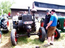 Nicht nur für Bulldog-Verrückte und Oldtimer-Fans gab es hier wieder eine Menge zu entdecken, auch alle anderen Besucher, ob groß oder klein, konnten die alten Modelle bewundern. In Reih und Glied standen viele Raritäten zur Besichtigung, und für ein intensives Fachgespräch fand sich immer Zeit. Nicht nur Bulldogs wie Lanz, Eicher und Schlüter waren zu sehen, auch viele Motorräder und einige Autos wurden zur Schau gestellt und von Jahr zu Jahr werden es mehr. Jeder Teilnehmer bekam, wie schon in den Jahren zuvor, ein Essenszeichen und ein Bierzeichen geschenkt. Nur mit dem Einlösen der Gutscheine war das so ein Sache. Zur Mittagszeit ging nämlich so gut wie gar nichts mehr aus der Festküche raus. Über eine Stunde aufs Essen warten, das war dann doch vielen zu lang und sie verließen verärgert und kopfschüttelnd das Zelt.