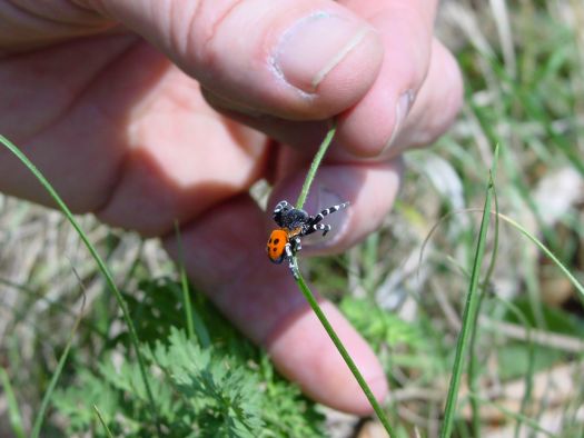 Jetzt ist aber wieder Wanderzeit: An sonnigen warmen Maitagen begeben sich momentan die auffallend rot-schwarz gefärbten Männchen der Roten Röhrenspinne auf Wanderschaft. Vielleicht hat der eine oder andere Spaziergänger ja schon einen der kleinen Krabbler entdeckt!? Falls ja, freut sich der Landschaftspflegeverband VöF wie im letzten Jahr über Fundortmeldungen, um noch genauer Bescheid zu wissen über die aktuelle Verbreitung der seltenen Spinnenart!