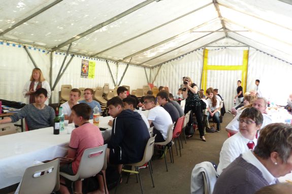 Dadurch konnten die Jugendlichen für drei Tage in den Alltag ihrer französischen Gastfamilien eintauchen und nebenbei noch ihre Französischkenntnisse verbessern, Land und Leute kennenlernen und Freundschaften schließen. Der Sonntag stand zunächst ganz im Zeichen des Fußballs. Am Ende des Freundschaftsspiels gegen den FC Liancourt konnte sich die deutsche Schülermannschaft über einen gelungenen 6:3 Sieg freuen und bekam nach den Grußworten des Bürgermeisters Roger Menn einen Pokal überreicht. Am Nachmittag fuhr man gemeinsam zum „Mémorial de Royallieu“, einem ehemaligen Konzentrationslager in Compiègne. Die Lichtung bei Rethondes Wald von Compiègne war das letzte Reiseziel, welches man ansteuerte. Hier wurden die Waffenstillstandserklärungen zur Beendigung der beiden Weltkriege unterzeichnet. Die beeindruckende und abgelegene Gedenkstätte gilt heute als Symbol für Frieden und Freiheit. Nach diesen drei eindrucksvollen Tagen ging es am Montag wieder in Richtung Heimat.