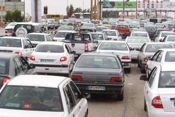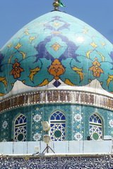 Verkehr in Teheran und Kuppel des Mausoleums des Imam Zadeh Saleh in Teheran