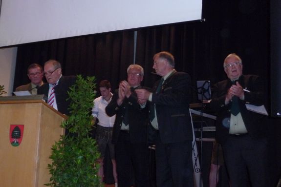 Selbstverständlich wurden auch treue und verdiente Mitglieder von Herrn Franzke mit einer Ehrennadel versehen. Dies waren Dr. Erich Wittmann (Goldene Verdienstadel), Fritz Kick (Silberne Verdienstnadel), Anton Popp (Silberne Verdienstnadel), Franz Kramschuster (Goldene Ehrennadel).