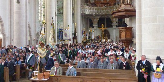 Für insgesamt sagenhafte 70 Jahre aktive Mitgliedschaft wurde Lob, der Ehrenvorstand des Pfaffenhofener Trachtenvereins D’llmtaler ist, nach dem Festzug im Festzelt geehrt. Zuvor allerdings begrüßte Rudi Dietz, Vorsitzender des Donaugaus, die Gäste mit einem herzlichen „Grias God in da Schanz“ im Ingolstädter Münster wo anschließend der Festgottesdienst zelebriert wurde.