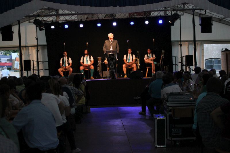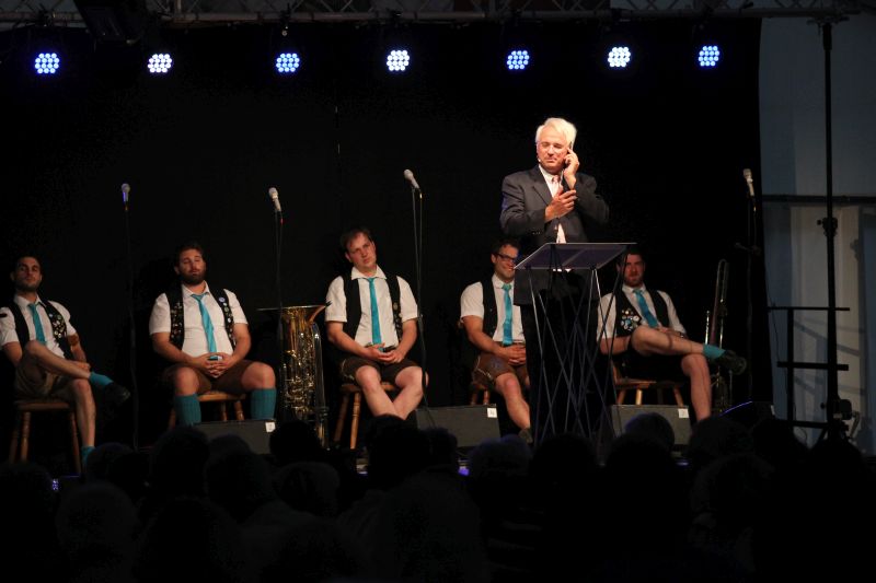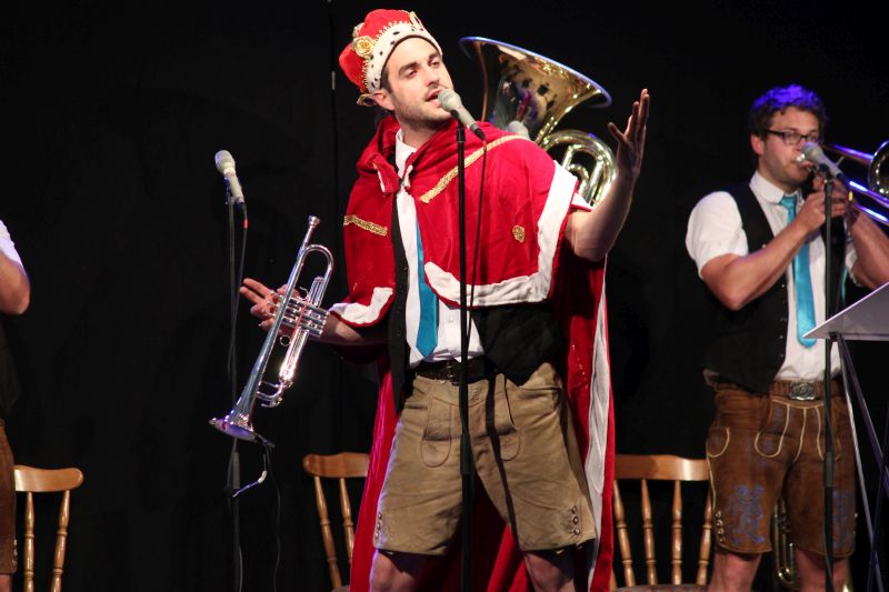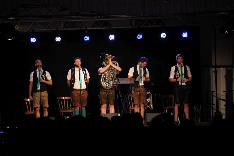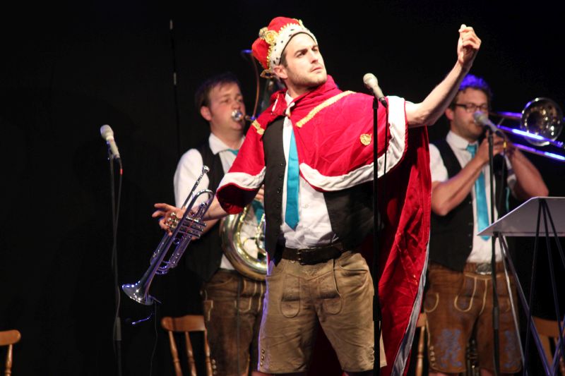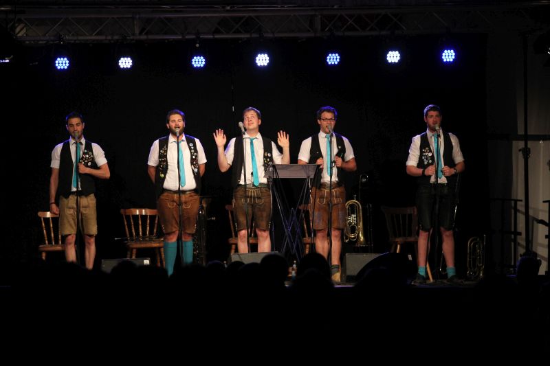 Begleitet und musikalisch untermalt wurde das Programm durch die "Bayrischen Löwen", die mit einer tollen Mischung aus bayrischen Volksmusiktönen, Comedy und Slapstick sowie bayrischen Versionen von Pop-Klassikern die eigentliche Entdeckung des Abends waren. Wer hat denn bitte schön schon einmal Freddy Mercury bayrisch singen hören? Queen auf König Ludwig - eine einfach nur geniale Idee. Und auch sie hatten sich auf Scheyern eingestellt. "In Scheyern gibt's an Metzger, der muss ganz was besonders sei" - nicht die Schickeria, sondern die Klostermetzgerei bekam an diesem Abend ihren Auftritt.