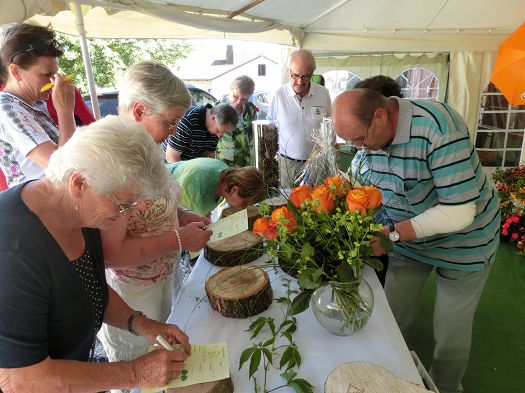 In einem Zelt war ein riesiges Sortiment wunderschöner Sommerblumen liebevoll aufgebaut worden, die von großzügigen Spendern, z.B. Weihenstephan und Friedrich Strauss, für die Tombola gestiftet worden sind. Außerdem wurde fleißig gerätselt, von welchen Bäumen das ausgelegte Holz war und wie viele Tannenzapfen in einem großen Gefäß waren. Den Siegern winkten schöne Preise.