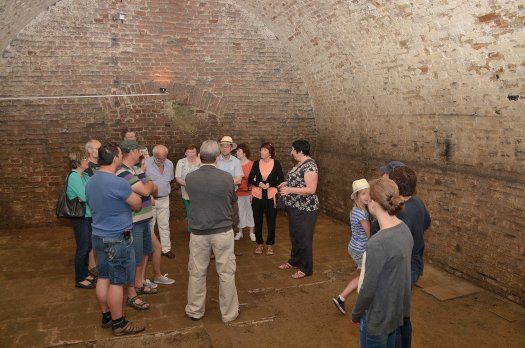 Eiskeller dienten wegen der konstant niedrigen Temperaturen der Aufbewahrung gebrauten Bieres bis in die Augustmonate hinein. Auch mit ganzen Blöcken gefrorenen Wassers, daher der Name. Erst mit der Erfindung des Kühlschrankes im Jahr 1860 wurden diese Lagerstätten recht schnell aufgegeben. Ihre Dienste ganz anderer Art taten sie während der Fliegerangriffe auf die Stadt im Zweiten Weltkrieg, und zwar als Luftschutzbunker. „Noch immer kursierende Gerüchte über Geheimgänge, die hinter den Eiskellern liegen, sind höchst unwahrscheinlich“, so die Gästeführerin mit einem abgeschlossenen Studium der mittelalterlichen Geschichte.