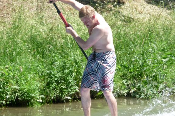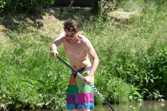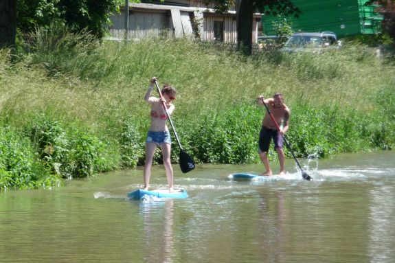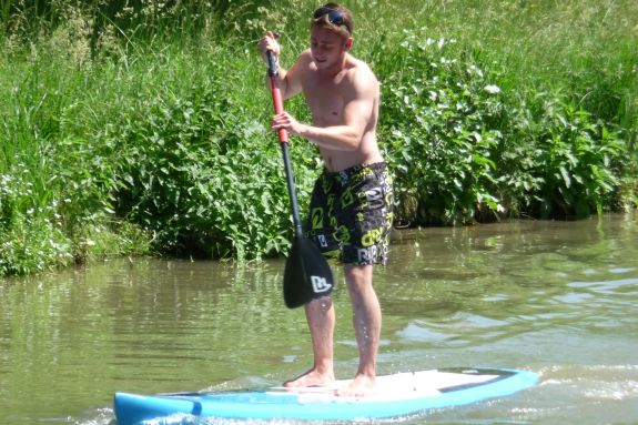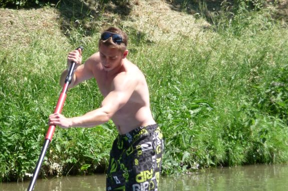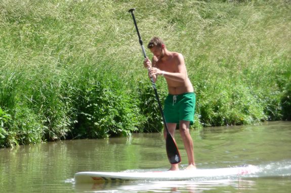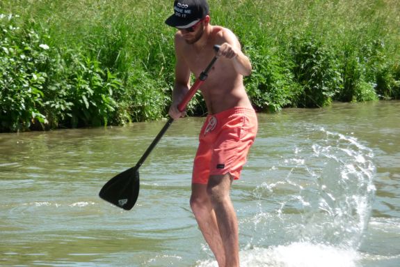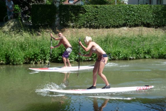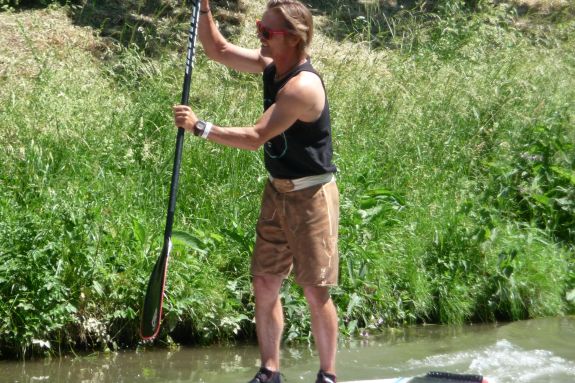 Stand-Up-Paddling heißt der Trendsport, der hierzulande Flüsse und Seen erobert. Es handelt sich hierbei um die „entspannte“ Version des Wellenreitens. Ganz ohne Wind und Wellen sorgt ein Stechpaddel für den nötigen Vortrieb, während der Paddler relaxt auf dem Brett steht und die Natur genießen kann. Hüftbreiter Stand, die Knie leicht gebeugt und das Paddel ins Wasser – schon kann es losgehen. Doch was einfach aussieht, ist es wohl nicht immer.