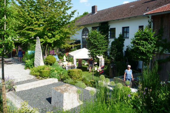 Mehr Garten geht nun wirklich nicht. Auf dem rund 2000 m² großen Areal der Geschäftsleute Johanna und Ludwig Kiermeier bot sich allen Liebhabern von Garten und Grün ein wahres Paradies dar. Bei einem Spaziergang durch den üppig blühenden Garten konnten die Besucher den liebevoll angelegten Schwimmteich erleben und sich Inspirationen für das eigene Zuhause holen. In Kiermeiers Gartenmarkt gibt es dafür ein umfangreiches Pflanzensortiment und viele nützliche wie auch dekorative Gestaltungselemente. Zahlreiche Wege und Sitzflächen luden zum Schlendern und Verweilen durch das formschöne Idyll ein. Das vielfältige Angebot wurde ergänzt von Ausstellern und Kunsthandwerkern mit schönen Dingen für Drinnen und Draußen. Für das leibliche Wohl war durch den Verkauf selbstgebackener Kuchen und Grillspezialitäten, die man im sonnigen Innenhof genießen konnte, bestens gesorgt.