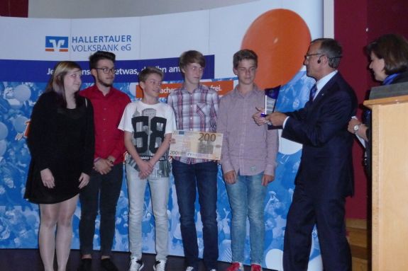 Der erste Preis für den Sieger der Kategorie Video/Film ging heuer an das Hallertau Gymnasium in Wolnzach. "Ticket in den Cyperspace" lautet der Titel des realistischen und nachdenklich stimmenden Films dotiert mit einer Trophäe und einem Geldpreis in Höhe von 400 Euro. Für die Filmgruppe nahmen Nicola Achatz, Christina Lehner und Alexandra Pfab die Auszeichnung entgegen.
