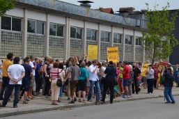 Viele der Käufer hatten selbst noch nie an einer Demo teilgenommen, ließen es sich aber nicht nehmen, in ihrer eigenen Stadt ein Zeichen zu setzen. Entsprechend gingen die wenigen Rechtsradikalen abseits vom Geschehen unter angesichts der vielen gutgelaunten Besucher. Der Platz vor der Moschee glich beinahe einer Dult - wer die Moschee endlich sehen wollte, konnte einen Rundgang machen, sich den außergewöhnlich schönen Gebetsraum ansehen, und sich dann draußen verköstigen lassen und unterhalten. Von der Demonstration bekam man vor der Moschee nichts mit.