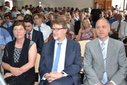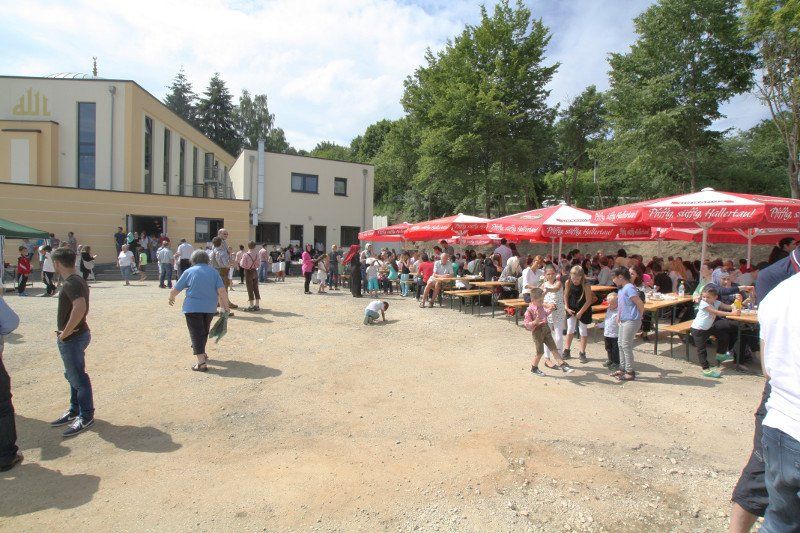 Die offizielle Eröffnung fand dann wie geplant gegen 13.30 Uhr im großen Saal mit allen Ehrengästen und sehr vielen Besuchern statt. Damit auch die deutschen Besucher verstehen konnten, was bei den teilweise türkischen Begrüßungsworten gesagt wurde, fungierte eine junge Frau als Dolmetscherin, die neben der türkischen und deutschen Sprache auch den bayrischen Dialekt beherrscht, wie sich im Gespräch herausstellte. Der Vereinsvorsitzende der türkischen Gemeinde, Recep Bal, begrüßte unter den Gästen Bürgermeister Thomas Herker, 2. und 3. Bürgermeister Albert Gürtner und Roland Dörfler sowie Landrat Martin Wolf und Gattin sowie den Vertreter des türkischen Konsulats, Selcuk Eke und den Generalsekretär der DITIP-Vereinigung Bayern; außerdem waren unter anderen anwesend der katholische Pfarrer Peter Wagner, der Vertreter der evangelischen Kirche für interreligiösen Dialog, der katholische Pastoralreferent für christlich-islamischen Dialog. Sie alle wiesen in ihren Begrüßungsreden auf das friedliche Miteinander der Religionen hin.