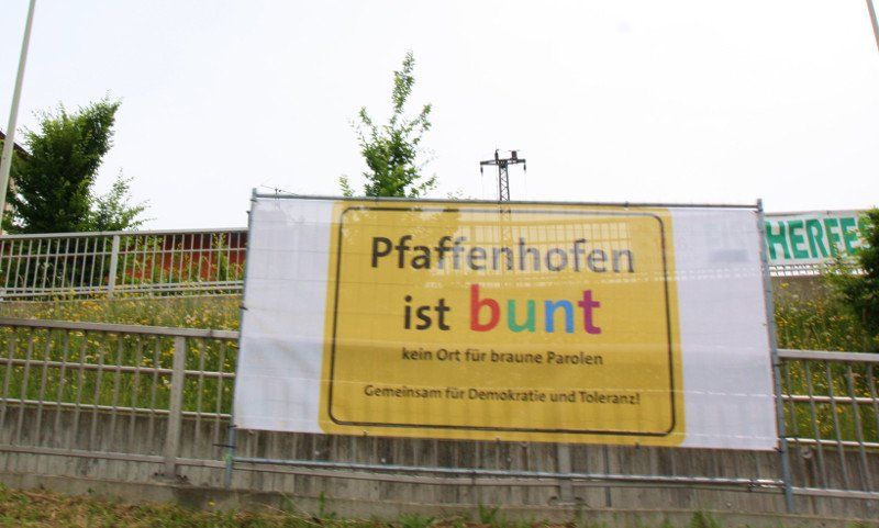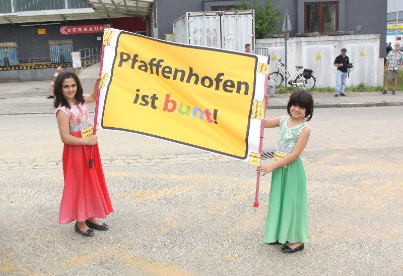Während der Eröffnungszeremonie in den frühen Nachmittagsstunden hatten sich wohl knapp 20 Rechtsradikale zusammengefunden und der Anführer der Mini-Partei „Freiheit“ verbreitete seine Hasstiraden über Megaphon, wobei sich die Gegner auf der Gegenseite der Straße fragten, für wen er denn diese Rede wohl hielt. Sie nutzten aber ihre Präsenz, um die Tiraden durch Pfiffe und lautstarke Parolen wie „Pfaffenhofen ist bunt“, „die Welt ist bunt“ zu stören. Vorbeifahrende Autos wurden bejubelt, wenn sie den Sprecher durch lautstarkes Hupen übertönten.