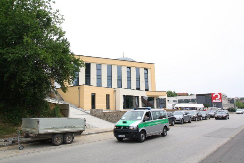 Sehr friedlich ging es zu bei der Eröffnung der Moschee an der Hohenwarter Straße in Pfaffenhofen. Mehr als 500 türkische und deutsche Gäste saßen bei heißem Sommerwetter friedlich draußen unter den Zeltdächern. Türkische Mitbürger erläuterten die Innenräume und Einrichtungen, während sich anfangs eine Handvoll Rechtsradikaler gut 200 Meter entfernt auf einem Schotterplatz sammelte, überwacht von einer Vielzahl Polizisten.