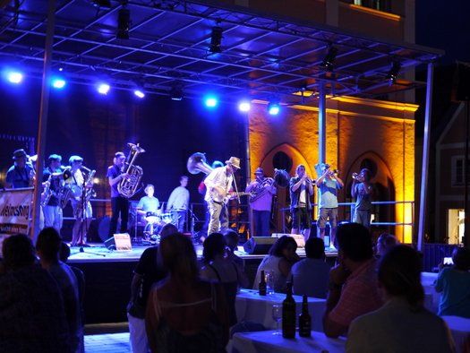 Das Münchner Kollektiv EXPRESS BRASS BAND hat als Hauptakt der Eröffnung den unteren Hauptplatz in eine gemütliche, rhythmische Multikulti Musikarena verwandelt. Die bunte Brass Truppe zelebriert seit über einer Dekade im Geiste des Sun Ra Arkestra oder des Art Ensemble of Chicago einen unverwechselbaren Brass Band Stil, tief verwurzelt im Jazz, Soul, Afrobeat mit Einflüssen orientalischer Musik vom Maghreb bis Afghanistan (Text Band).