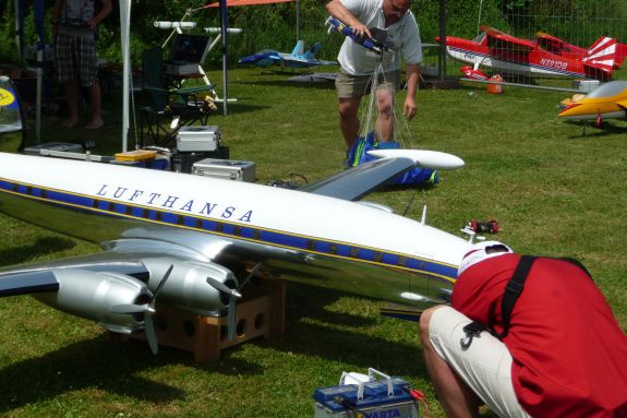 Gezeigt wurden daneben Oldtimer-Modellflugzeuge, mehrmotorige Großmodelle aus der Anfangszeit der Verkehrsfliegerei sowie Hightech-Modellflugzeuge mit echtem Gasturbinenantrieb. Ein echter „Hingucker“ war auch eine Lufthansamaschine, genauer gesagt, eine originalgetreue Nachbaute ihres „großen Bruders“, welches im Münchner Modellflugpark ausgestellt ist.