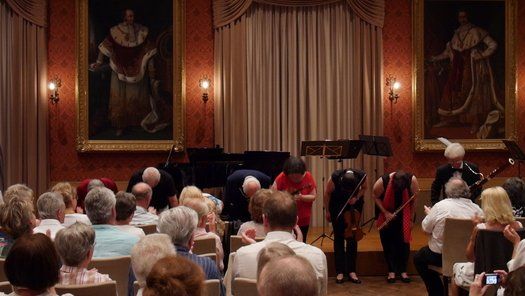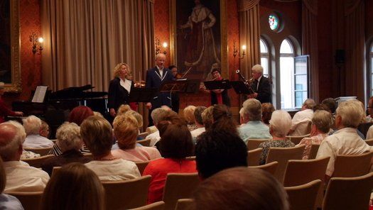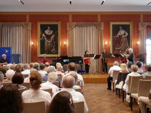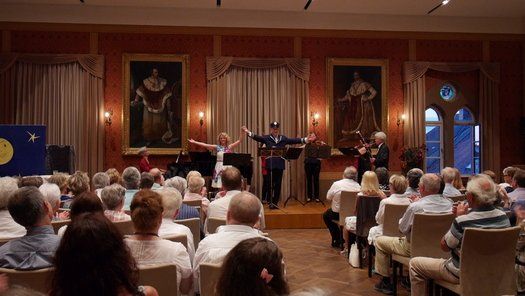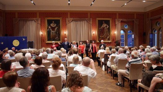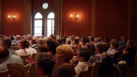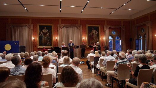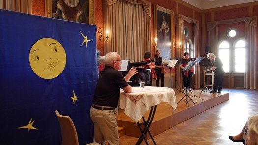 Die Sehnsucht nach dem Mond hat schon viele Menschen rastlos gemacht, heißt es in der Vorankündigung der Kulturabteilung. Beim erfolgreichem Auftritt des Salon-Ensemble Ingolstadt, mit der Sopranistin Judith Spindler und dem Bariton Rudolf Laué in acht verschiedenen Gesangsrollen, kam noch, gelinde gesagt, die Sommersonnenhitze dazu.