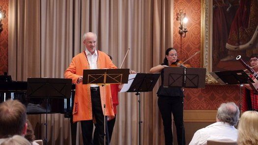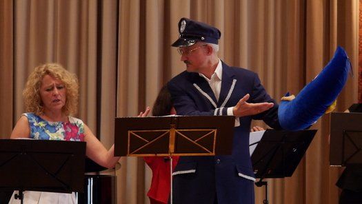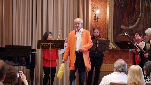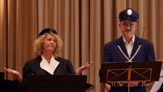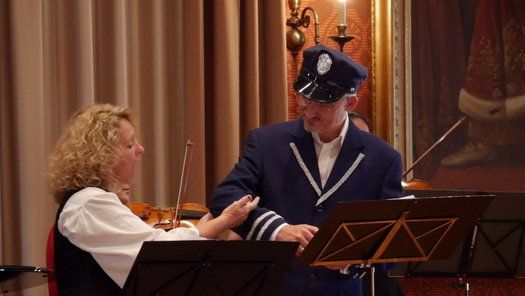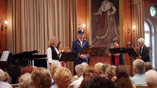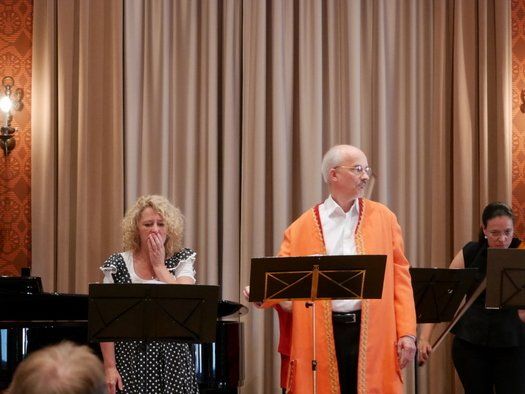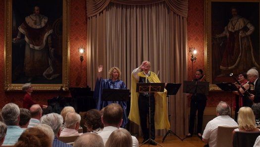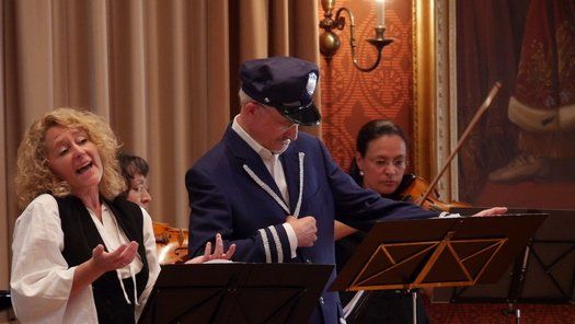 Dr. Lorenz Kettner hat mit seiner charmant witzigen und aufklärenden Lesung zwischen den bekannten Stücken, Klarheit und Hintergrund zur Handlung der „Fantastisch-burlesken Operette“ gebracht. Teilweise schnippische Bemerkungen zum Zeitgeist der Jahrhundertwende, ließen dem Gesangsduo immer wieder genug Raum sich umzuziehen und als neue Figur die Bühne zu betreten.